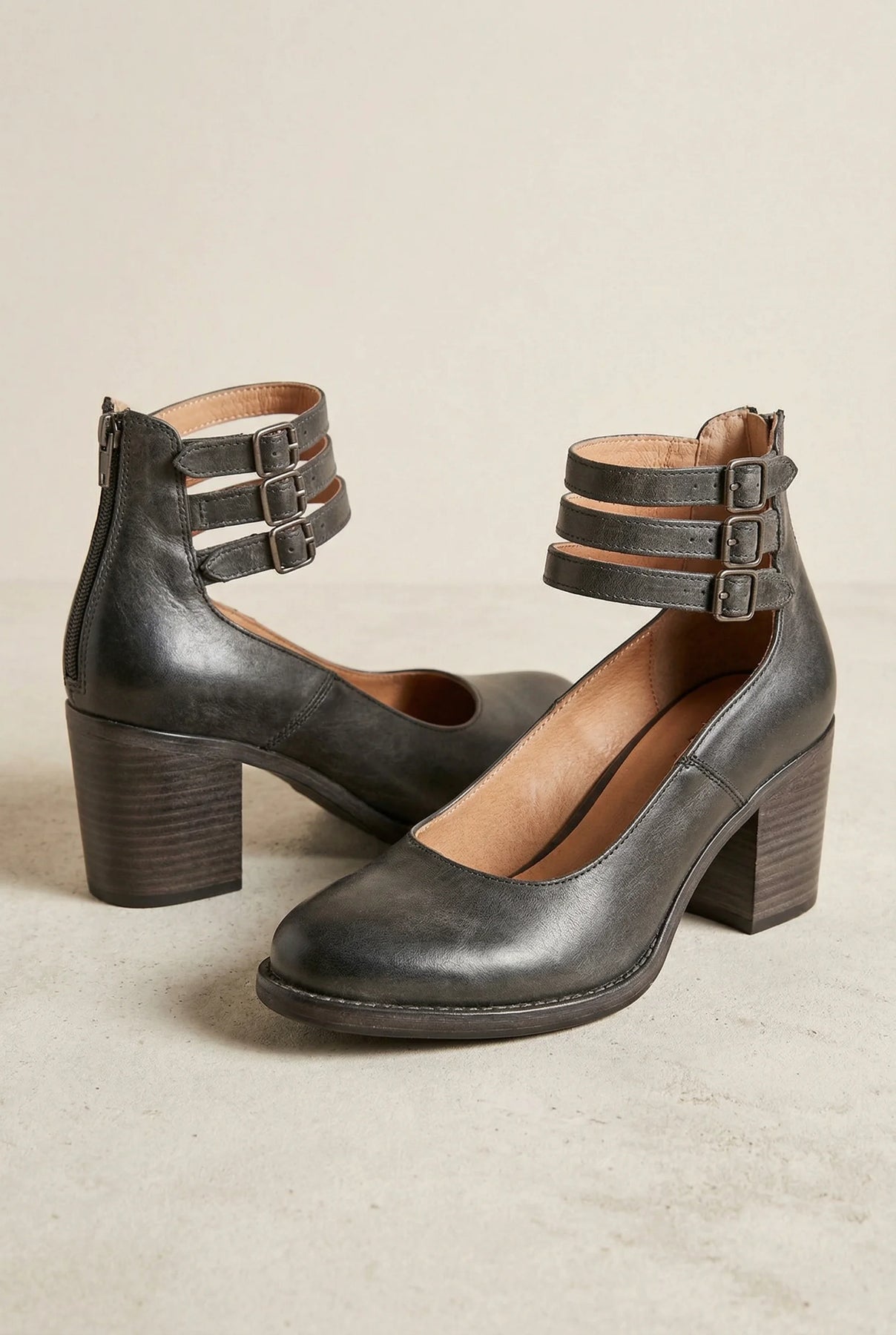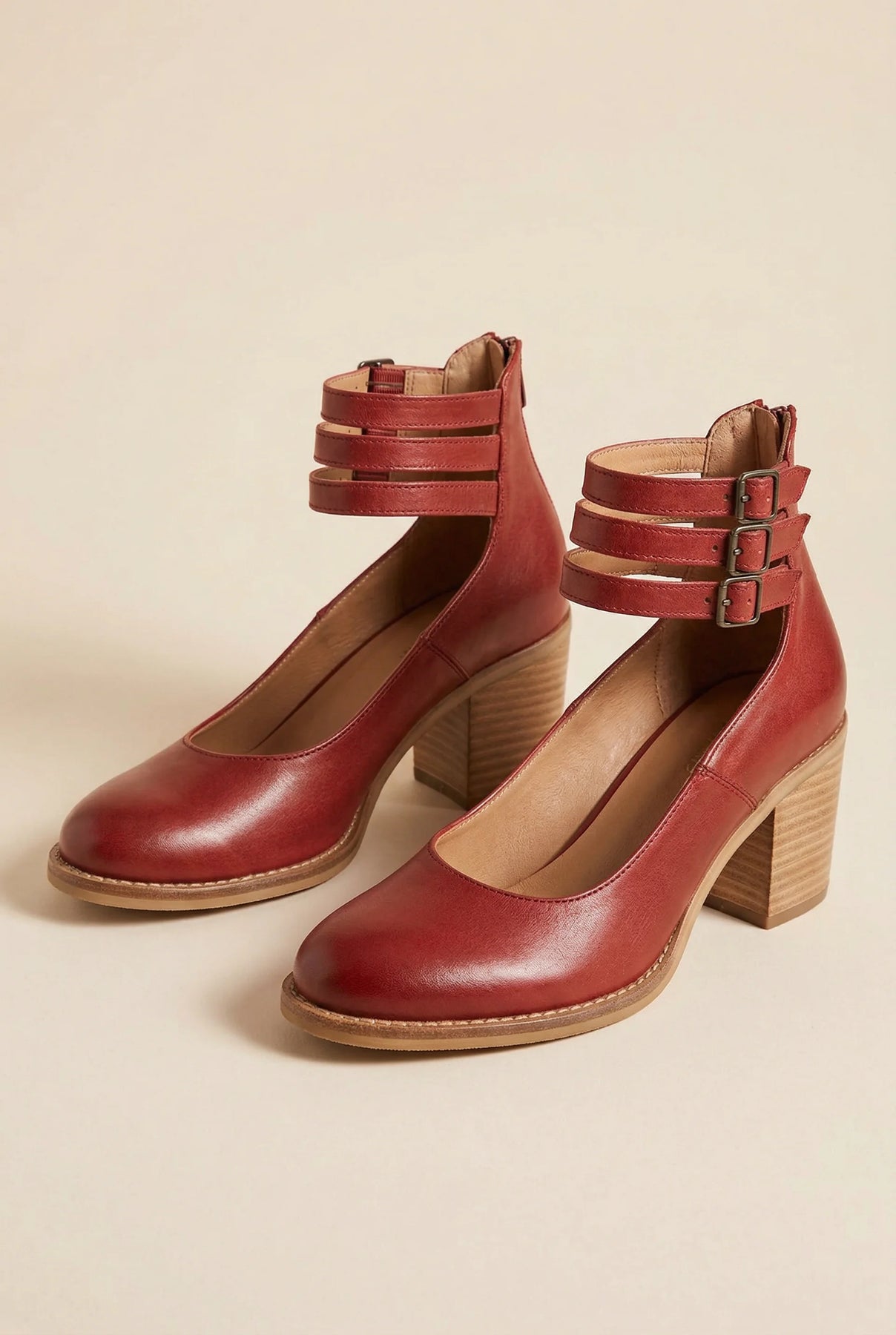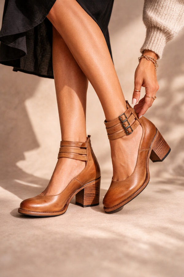 • Ankle strap block heel shoes