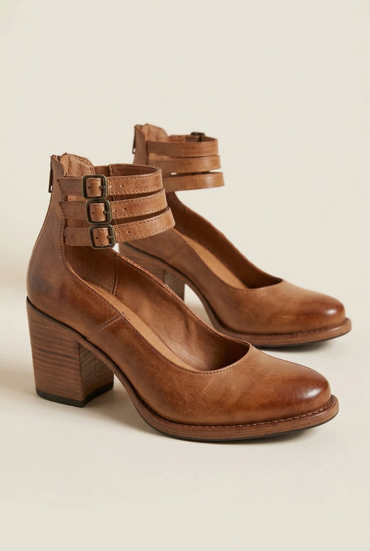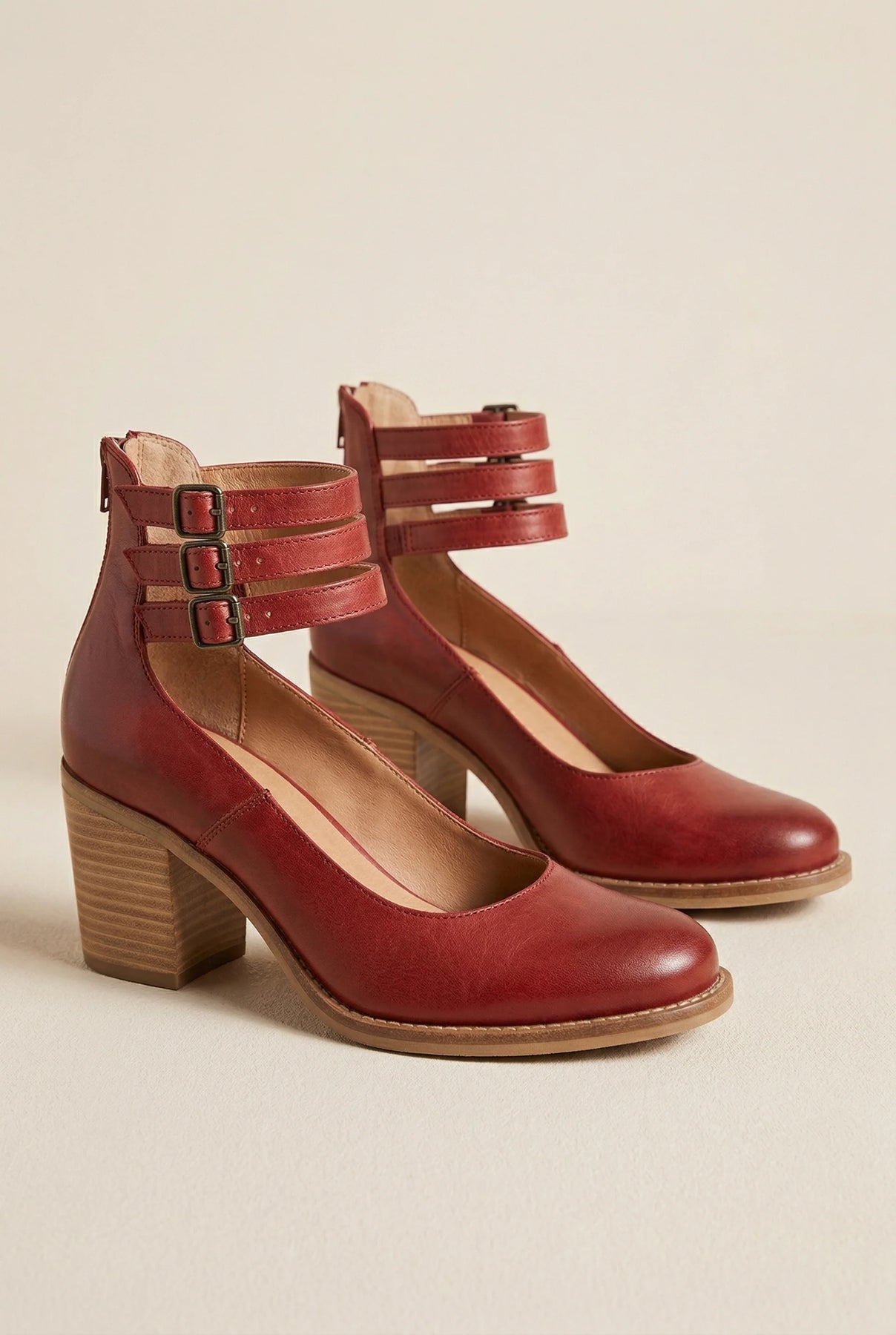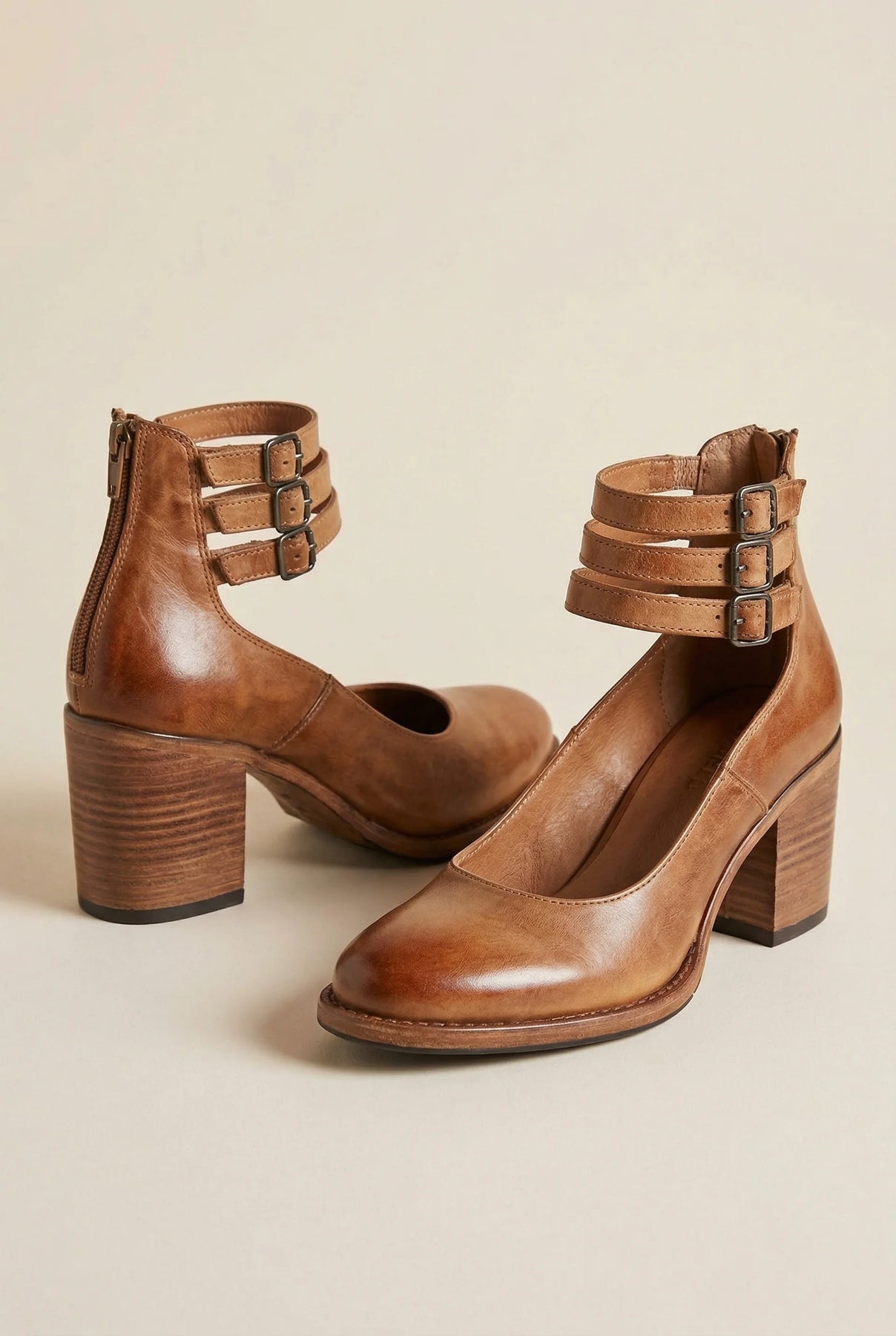 • Ankle strap block heel shoes